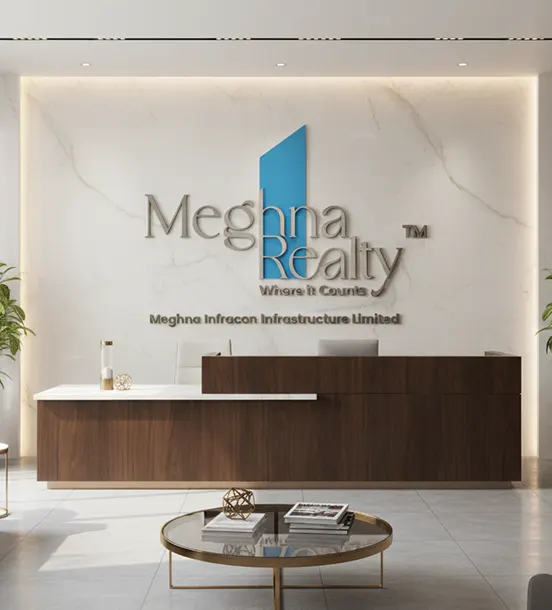 MEGHNA REALTY (Meghna Infracon Infrastructure Limited) expressly disclaims all warranties of any kind whether express or implied including the warranties of merchantability and fitness for a particular purpose. MEGHNA REALTY (Meghna Infracon Infrastructure Limited) reserves the right, without any obligation whatsoever; to review, correct, remove or modify all or any content submitted herein. All plans, drawings, amenities, features, specifications other information etc., mentioned herein are indicative and/or suggestive of the kind of development proposed to be undertaken and are subject to the approval of the respective competent authority. All plans, renders and models displayed herein are artist's perceptions and must not be considered as actual buildings, flats, apartments, etc.